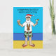 A cartoon of Father Christmas standing on a beach in flip flops, shades and holly patterned shorts. The words 'Christmas in July Party Invitation' accompany the image.