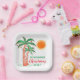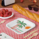 Invite family and friends to your Christmas-themed celebration and decorate it with these island-style square paper plates featuring hand-drawn palm trees decorated with lights.