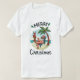 Funny Christmas design featuring an illustration of Santa Claus relaxing at the beach under a palm tree on a little island. A perfect match for Christmas in July as well as for real Christmas in December.