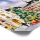 This art print features a watercolor portrait of Madrid, Spain during Christmas time.