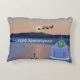 This Christmas accent pillow features Santa Claus flying over Santorini, Greek.