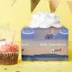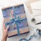 This Christmas wrapping paper features Santa Claus flying over Santorini, Greek.