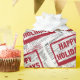 Layers of income tax forms for Happy Holidays red label and postmark.