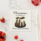 Christmas paper cocktail napkins with slogan "Christmas is short so savor your pudding" with delicious looking Christmas pudding decorated with holly.