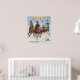 Poster inspired by a fabulous Christmas painting by Swedish artist Jenny Nyström (1854 – 1946). The picture shows two young children in a festive sleigh, drawn by two magnificent horses. The horses, adorned with plumes, tassels, and necklaces made of lots and lots of bells (imagine the sound!), appear to be running at a fast pace. In the background is a beautiful winter forest, with snow covered tree branches. Behind the trees the sun is setting, colouring the sky in a saturated orange colour. It is probably Christmas Eve, one of the children has a lot of packages in his or her arms.