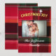 Send Christmas Joy Family Baby Photo Personalise Card with a modern plaid Madras pattern. Spread joy to your friends and family. Personalise it and replace with your photograph and family name. Very nice to give to family and friends.