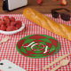 A holiday plate for all those parties and gatherings during the Christmas season. This design features a geometric star pattern in traditional holiday colours of red and green. The text is fully customisable to personalise as you choose. Matching paper napkins available in this design.
