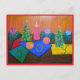 This holiday post card displays a unique still life of various objects that reflect the joys of the Christmas season: candles, Christmas trees, pine needles, and ornaments.