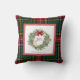 Christmas Joy Wreath Bow Watercolor Tartan Plaid Cushion