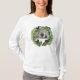 Keeshond wading in a snowy pond, surrounded by a Christmas wreath one of a series of seasonal Keeshond t shirts