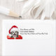Silver or grey tabby kitten in a Christmas gift box wearing a Santa hat sends wishes of a Merry Christmas photo holiday return address label