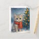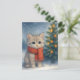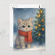 Christmas Kitten Postcard Cute Cat in Red Scarf by Holiday Tree.