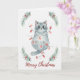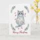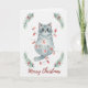 A charming holiday card illustrated in the soft, nostalgic Tradition Treasures style. It features a round-eyed grey kitten sweetly tangled in glowing Christmas lights, framed by festive pine branches and red berries. The watercolour textures give it a timeless cosy feeling. A delightful choice for cat lovers and anyone who enjoys sending a touch of Christmas whimsy and warmth.