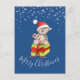 Christmas koala bear with candy cane and sitting on a gift Australian Christmas watercolor art postcard. Original watercolor painting and design by Sarah Trett. www.sarahtrett.com for www.mylittleeden.com