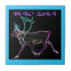 A caribou in neon colours with Kuvianak Inovia (Merry Christmas) spelled out in the Inuit (Eskimo) alphabet. Inspired by the Northern Lights.