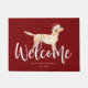 A custom yellow Labrador Retriever Christmas doormat for the holiday season. Easily personalise with your family name and year.