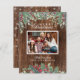 This flat holiday card is the perfect way to send some Christmas spirit to friends and family. This design features a rustic wooden background with Christmas sprigs, string lights, and snow at the top and bottom of the page. In the centre is your holiday photo with "Merry Christmas" above and "with love from", and your family name, below. To customise this design simply click the blue "personalise" button and type your details into the text boxes that appear, then click "change" to upload your own image.