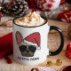 This cute festive coffee mug makes an excellent Christmas gift for french bulldog fans. The design features a light fawn coloured french bulldog wearing a red Santa hat and aviator sunglasses.