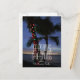 Christmas lights adorn a palm tree at sunset holiday postcard
