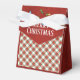 Colourful string of holiday Christmas lights with red and green plaid for gift favours.