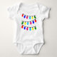 This baby bodysuit has a Christmas design of three strings of old-fashioned Christmas lights.
