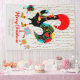 The "Christmas Lights and Baubles" illustration captures the festive spirit with a cute Portuguese rooster at its heart. The rooster's tail's black feathers are decorated with white dots, folk flowers and leaves, and a red heart. The rooster clutches Christmas baubles in its hand feathers as he walks towards home. Alongside, animated Christmas presents and baubles parade playfully, all marching towards home to decorate the Christmas tree. I guess we can say that it is looking a lot like Christmas! A luminous curtain of twinkling lights drapes behind, casting a magical aura. This enchanting scene blends tradition and whimsy in perfect harmony.