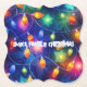 This is a festive Christmas-themed design featuring a vibrant design of colourful lights strung together against a dark blue background. The lights are arranged in a whimsical pattern, creating a sense of celebration and merriment.
