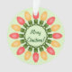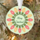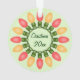 This festive holiday design is composed of a circle made up of graphic Christmas light bulbs in colours of red and yellow-orange.