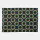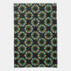 Brighten your kitchen during the holiday season with this tea towel featuring a colourful Christmas graphic pattern of blue and orange light bulbs in a circle. The background colour is easily edited.