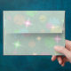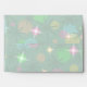 A fun, festive, retro look design inspired by rainbow-coloured fairy lights on a christmas tree. Envelope with a green, blue, pink, yellow orange and green customisable design for you to personalise with your own text, pictures and ideas. Created using digital techniques by jess perry.