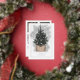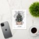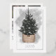 Celebrate the season with this elegant and minimalist holiday card featuring a glowing Christmas tree in a chic woven basket, set against a soft watercolor backdrop. Accented with a real foil border and customisable "20XX" year in gold, silver, or rose gold, this design is perfect for sending stylish and modern holiday greetings with a touch of sparkle. Square format photos are recommended.