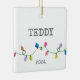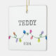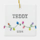 Artisan Christmas Lights in fun colours on white background with custom NAME, YEAR in grey. Custom PHOTO in black&white on back. Easy to personalise, text, text colour add own photo. Great for ANY pet lover, family, holiday party favours, hostess gift, pet parents. Colourful, Modern, Fun. Mix and match entire Christmas Ornaments / Holiday / Pet Lover / Keepsake Collections by TMCdesigns.