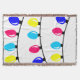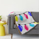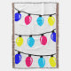This throw blanket has a Christmas design of three strings of old-fashioned Christmas lights.