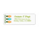 Three colourful holiday light bulbs all in a row are featured in the Christmas graphic decorating this holiday inspired return address label in hues of orange and blue with green cords between. Name and address text are easy to customise,