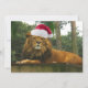 Majestic lion wearing a red and white Christmas santa hat. Wanting to wish you a roaring Christmas!