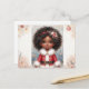 Send warm wishes and festive cheer with this charming Christmas Girl Postcard, featuring an adorable curly-haired dark-skinned child dressed in a red Santa coat trimmed with fluffy white fur. With big expressive eyes, a heart-shaped button at her collar, and a joyful holiday background adorned with soft snowflakes, twinkling lights, and rustic winter foliage, this cutesy design captures the magic of the season.