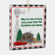 Christmas Little Red Truck with cabin and windmill Ceramic Ornament