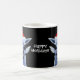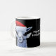 This is a cute Christmas mug featuring an adorable llama wearing a Santa hat on a black background. The text on the mug can be customised with your own or left as is.