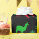 Cute holidays gift wrap with red and green Llamas or Alpacas and black background, with snowflakes and the saying, "La la la la LLama."