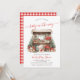 Christmas Locally Grown Farmers Market Baby Shower with a Red gingham pattern on the back. Available digitally and printed. Celebrate the mum-to-be with this market theme design with a festive farmers market stall of winter florals, red and white poinsettias and a cute teddy bear and strawberry. watercolor illustration. Locally Grown is in a stylish script with swashes. Easily personalise the words as required.