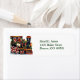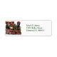 This seasonal return address label features a cute image of a black locomotive in Christmas decoration, including red and white peppermint striped wheels and a gift tag. Easy to customise the text.