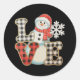 Christmas Love Cute Snowman Buffalo Plaid Winter Classic Round Sticker