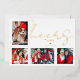 Christmas Luxury Minimalist 4 Photos Family Metallic Foil Holiday Card with Envelope.