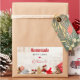 Made with love personalised stickers with a rustic photograph. A light brown wooden board with various Christmas elements along the bottom.
