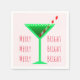 These cute napkins for your holiday party have a green martini with a red and white candy cane garnish. Text on the sides says "Merry Merry Merry and Bright Bright Bright."