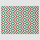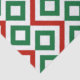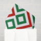 This bold green, white, and red geometric pattern is an original ornamental design perfect for Christmas. Green diamonds with white centres are surrounded by white meanders which angle around them. Red zigzags separate the winding white paths and offset diamonds.