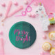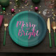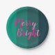 Christmas Merry and Bright Green Pink Party Paper Plate