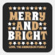 Christmas Merry and Bright Modern Bold Gold Black Square Sticker