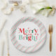 christmas merry and bright pink red modern font paper plate