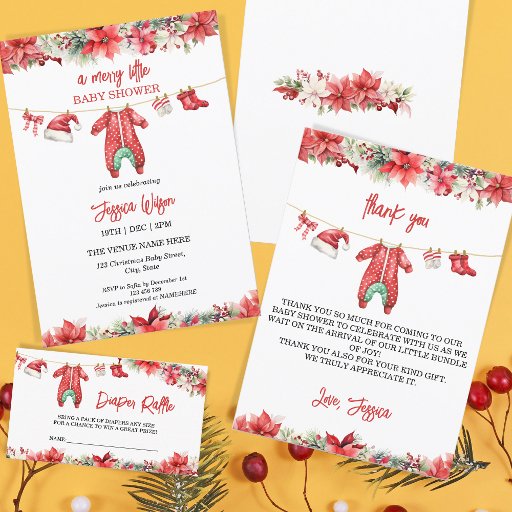 Christmas Merry Little Baby Shower Gender Neutral Paper Coaster , watercolor illustrations with Christmas tree guirlanda and Poinsettia